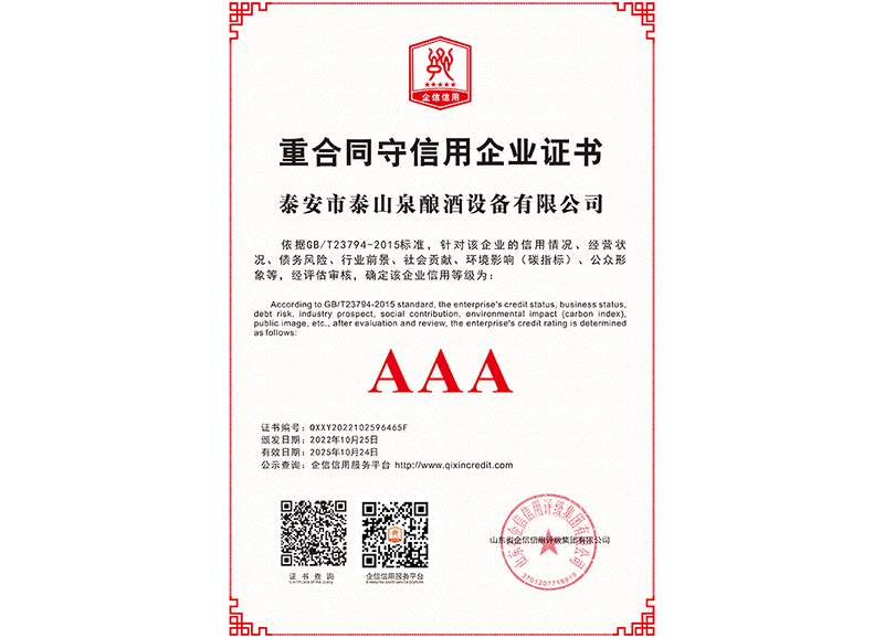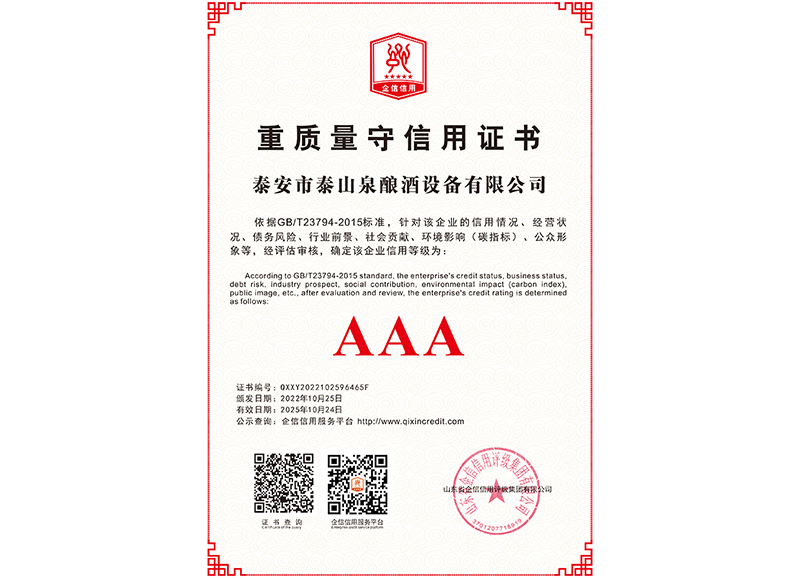 泰安市泰山泉釀酒設備有限公司,是一家專業從事釀酒設備機械化研發(fā)并集技術咨詢,工程設計,制造安裝,人員培訓及售后服務為一體的綜合性企業,本公司主要產品為:大曲清香、小曲清香、大曲醬香、大曲濃香等香型白酒機械化設備。 本公司與中國科學院自動化研究所簽訂技術服務合同,引進先進技術,研究生產全自動化機械釀酒設備,由中國科學自動化研究所的技術支持,打造最先進的生產釀酒設備,公司有信心打造全國最先進白酒...
